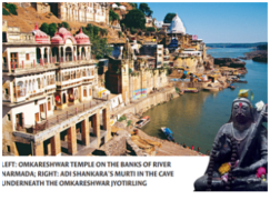 As one is led into the Adi Shankara gufa, the cave right underneath the Jyotirling at Omkareshwar, one is drawn into a meditative stillness in front of the Shankara Murti installed there. Tradition states that this is the cave where Shankara, travelling from down south Kalady as a boy of nine, met his guru, Govindapada, on the banks of the Narmada. When asked by Govindapada, “Who are you?” Shankara bursts forth into the Dasashloki, an evocative ten-verse composition on the true Self, Brahman, which defines him. Shankara’s prodigious reply, considered his earliest exposition of Advaita, startles Govindapada into realising that this was a rare intelligence, and he accepts Shankara as his disciple.